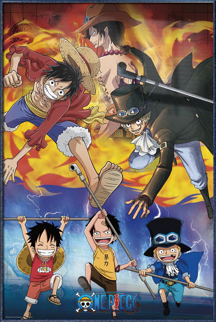 One Piece Framed Anime Tv Show Poster Ace Sabo Luffy Size 24 X 36 Orbit Blue Aluminum Frame Walmart Com